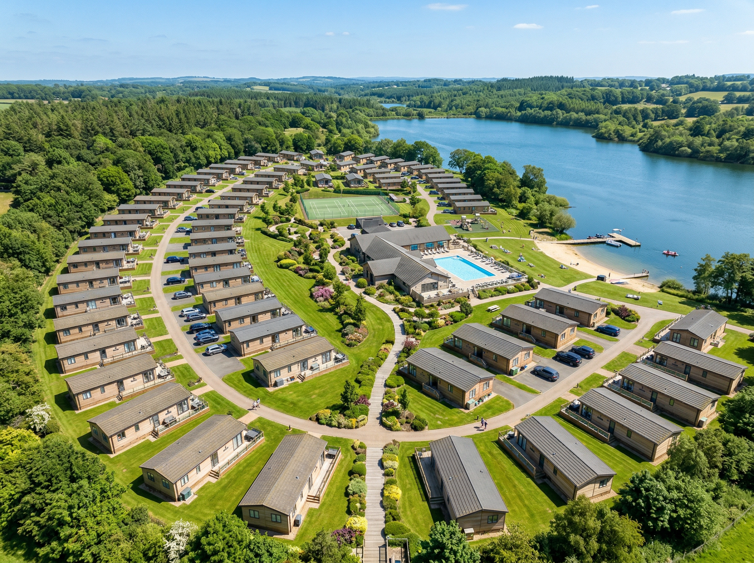 Houten, kunstof of aluminium chalets op een recreatiepark of vrijstaand perceel.